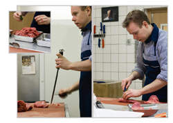 In 2004 kiest ook David, echtgenoot van Griet, ervoor om beenhouwer te worden. Dit was geen voordehandliggende keuze. David heeft steeds in de metaalsector gewerkt en is afkomstig uit Beernem, West-Vlaanderen. Toch spreekt ons beroep hem enorm aan en dankzij de goede opleiding van Herman en Rudi heeft David zich snel de stiel eigen gemaakt.